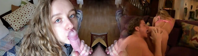 Kinky stepsister offers foot massages, ends up sucking and riding boner until milking it.