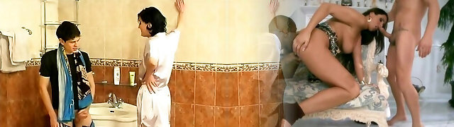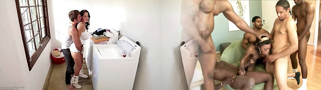 Erotic cock sucking fun and slit fucking in the washroom on laundry day