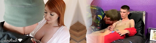 Breath-taking slender girl makes love to him until he cums