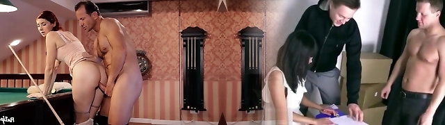 Fortunate dude fucks a stunning red beauty Kattie Gold at the pool table.