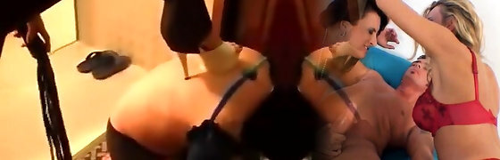TWO YOUNG GERMAN MISTRESS HUMILIATE 70 YEAR Senior MAN