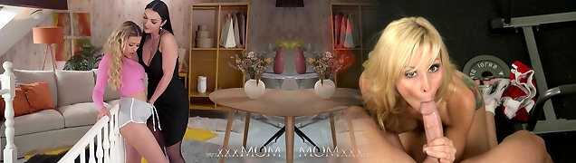 Busty stepmom and sweet teen licking and clit to nub fuck