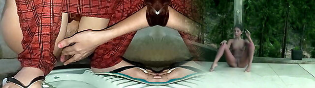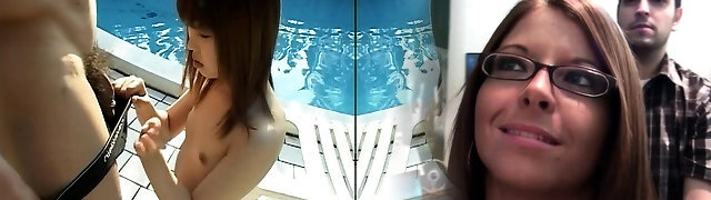 Japanese is shy but rubs manmeat at the pool