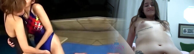 Asian Lesbos in Swimsuits Sucking Licking Fingering