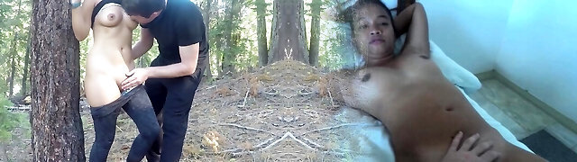 Kinky amateur girlfriend getting fucked in the woods by her super-naughty boyfriend