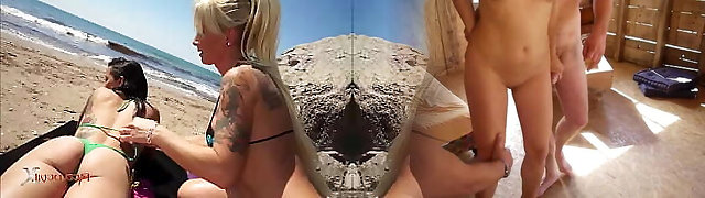 Hot lesbian orgy scene on the beach - Angelica Queen and Nikita Ways