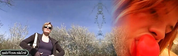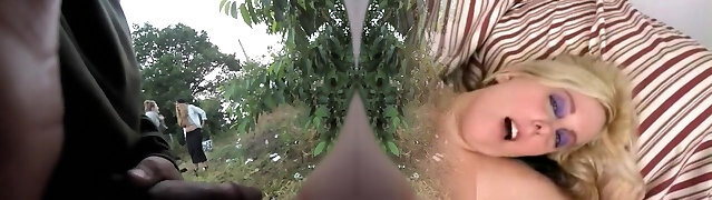 Buxom Russian swallows cum after risky outdoor fuck - Point Of View