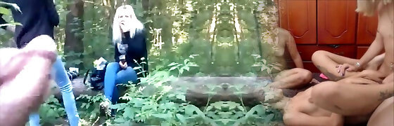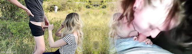 Public stiffy show in front of the duo of hikers. She helped me cum while he was on the phone