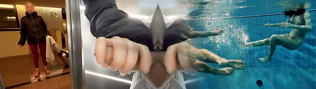 An unknown sporty girl from the motel gives me a suck off in the public elevator and helps me finish cumming