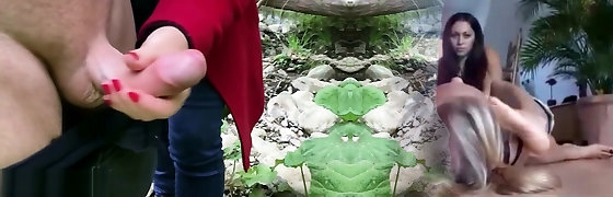 Extraordinary Public Exhibitionist Hand-job, Clothed People Walking By With Miss Creamy