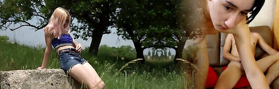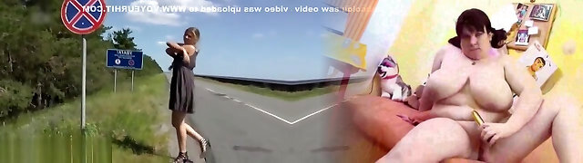 Sweet Russian nubile babe by the highway flashes her pussy