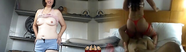 My shameless chubby girlfriend showcases her body to delivery boy