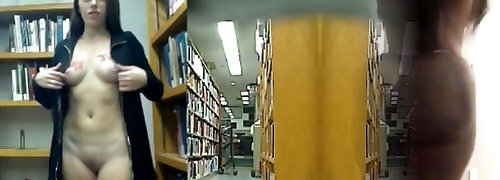 Shameless girlfriend getting bare in the public library