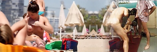 VoyeurChamp Exhibitionist Wife Alison Vs Naked Beach Voyeurs!