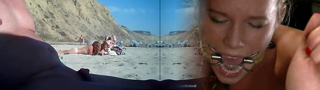 2 gals make fun with a guy's microdick on a nudist beach