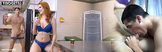 Sexy Buxom Redhead Can't Fight Back the Temptation Of Her Hostel Roommate's Hard Dong