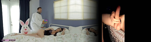 Dude in funny costume fucks stepmother and step daughter early in the morning