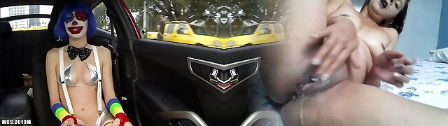 Sexy clown climbs in the car and fucks his fat jizz-shotgun