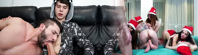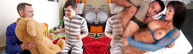 Twink Stepson And Stepdad Family Threesome With Stuffed Wolf