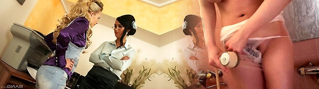 Cathy Heaven and Wendy Moon take care of one luck fellow's boner