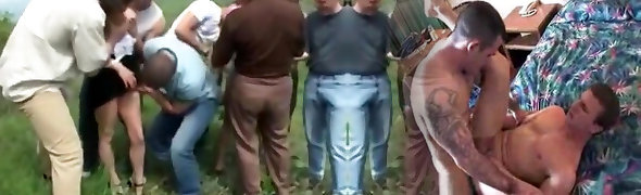 Outdoor piss gang-fuck hot and messy