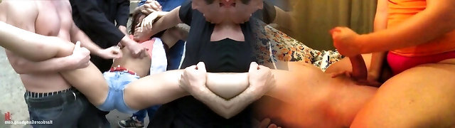 Brunette forced ravaged in double penetration group sex