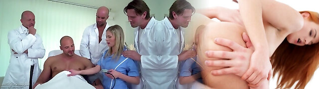 Czech nurse Claudia Macc is poked by several medics and horny patient