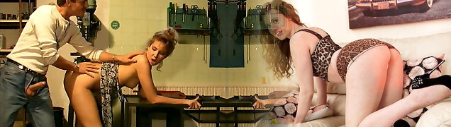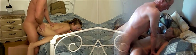 Ash-blonde teen fucked by her stepdaddy and by her stepbrother