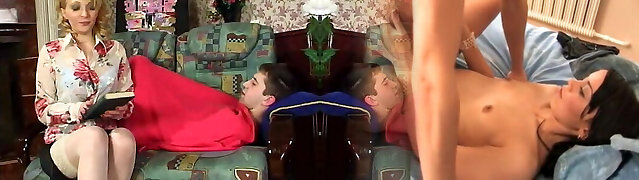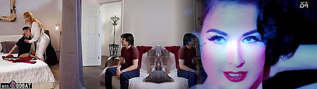 Milf Lauren Phillips tag teamed by her two stepsons thru a curtain