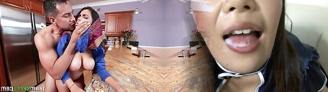 Horny macho doggy plows super big-titted Indian housewife Ada S at kitchen tough