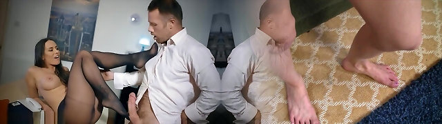 Pantyhose office mega-bitch footplay ends in a good fuck