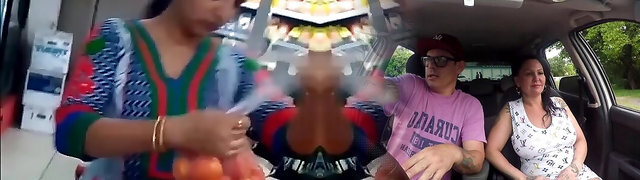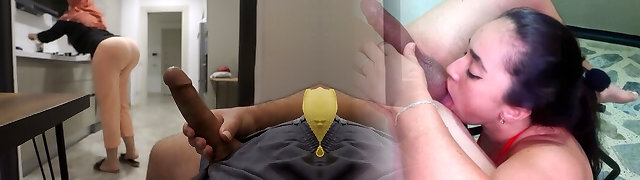 Straight haired brunette seduces a dude and deep throats his tool for guy goo