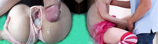 Filling Pussy With Cum Through Ripped Underpants