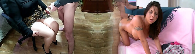 Cuckquean watching her BF having dirty sex with Mature Super-bitch