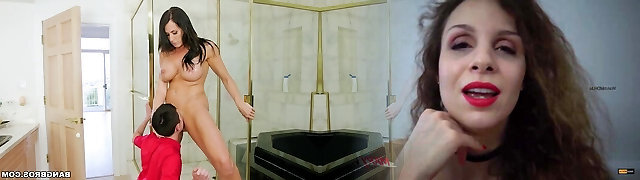 figlio-in-law gonzo polverizzazione di buone dimensioni culo mamma in doccia sperma sulle sue tette