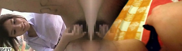 Sottotitoli CFNM Giapponese mungitura sperma, sotto il cielo blu