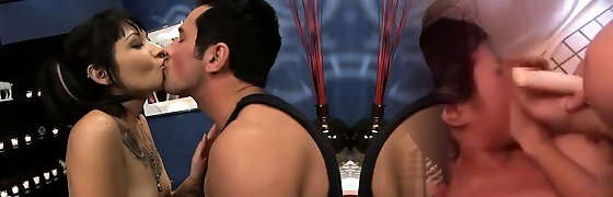flessibile bosomy con i capelli scuri e mega-cagna ottiene il suo retto correttamente sbattuto mish