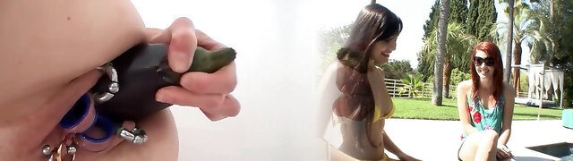 stretching il suo teen figa con un gigante gonfiabile dildo fino a che non è spalancata spalancata
