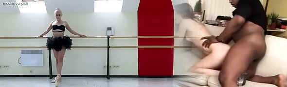 flessibile ebano eden west gode durante la guida di un duro cazzo bianco