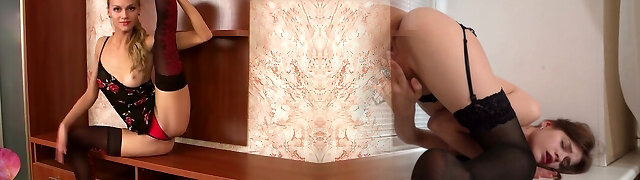 incredibile flessibile luce dai capelli signora in collant masturba il suo fuck-a-thon un po