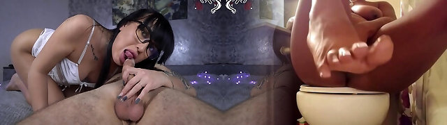 nerd stunner dall'estremo oriente vuole che la sua gola sia piena di sperma