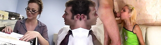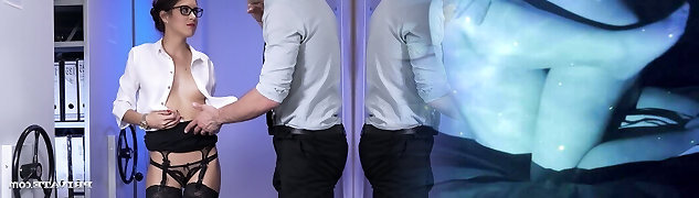 platinum-segretaria bionda con gli occhiali kamila e il suo partner saziare il loro capo