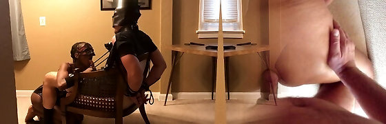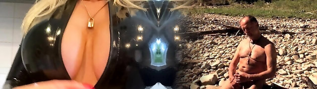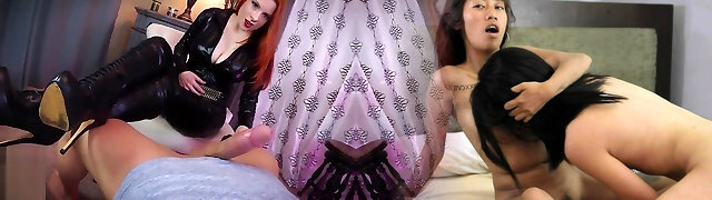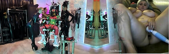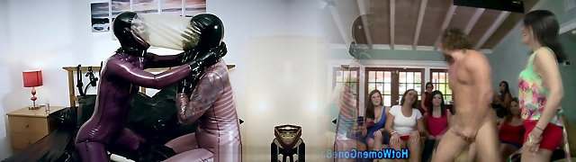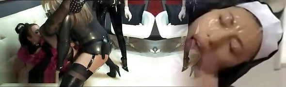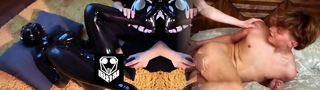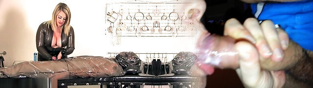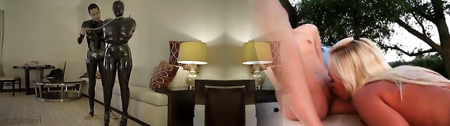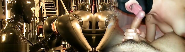 Latex mistress a scopare uno dopo l'altro slave