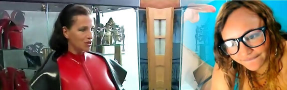 sissy crossdresser ottiene sculacciato, remato e frustato da padrona in lattice