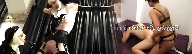 2 dominas in lattice abiti mettere su cinghia dildo e umiliare un servo tizio