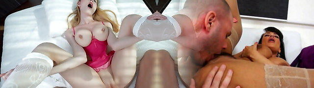 попросила госпожу выебать своего мужа. (страпон, кончает)