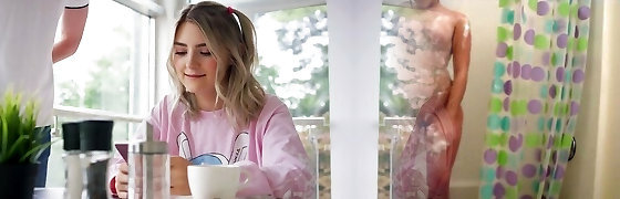 giovane madre ottiene intimo con figliastro mentre il marito sotto la doccia