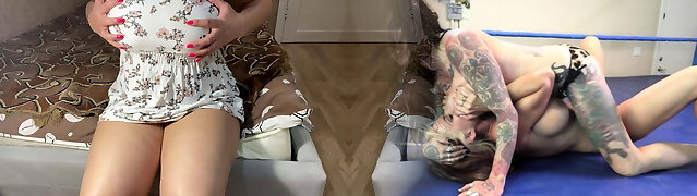 bubble-ass bionda ottiene cunni e fisting anale dalla sua procace bff davanti al suo cornuto bf