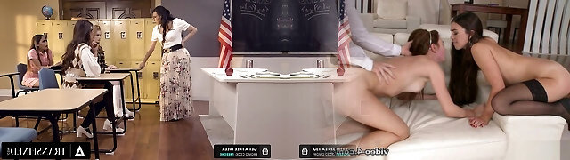 cis ragazze sono penetrato da meraviglioso transessuale docente a destra sul tavolo