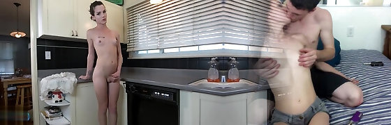 skinny tgirl sensualmente cums mentre il suo patrigno scopa il suo buco dolce